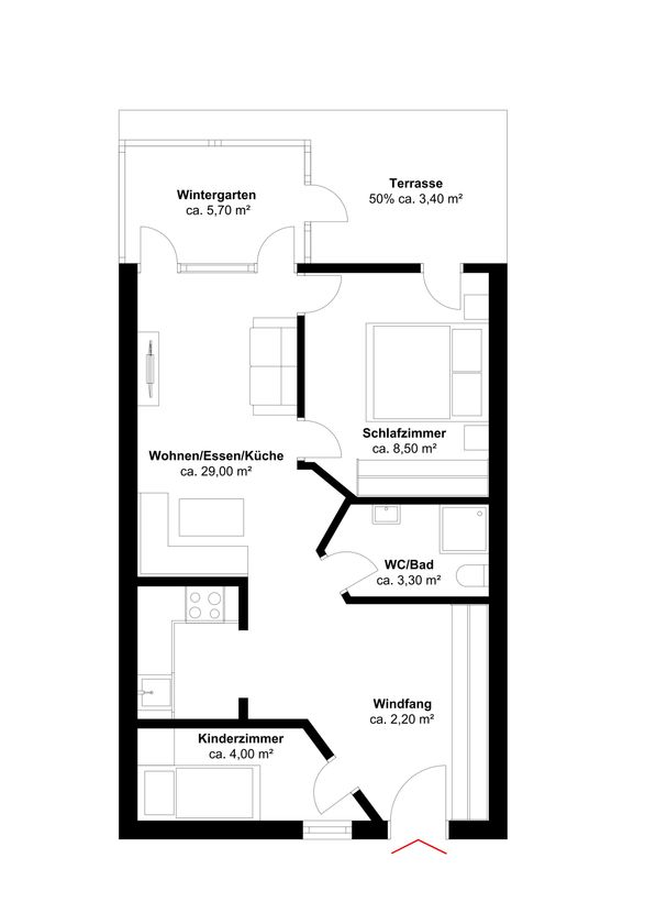 (72 qm) für 4 Erwachsene und 2 Kinder mit großzügigen Wohnzimmer